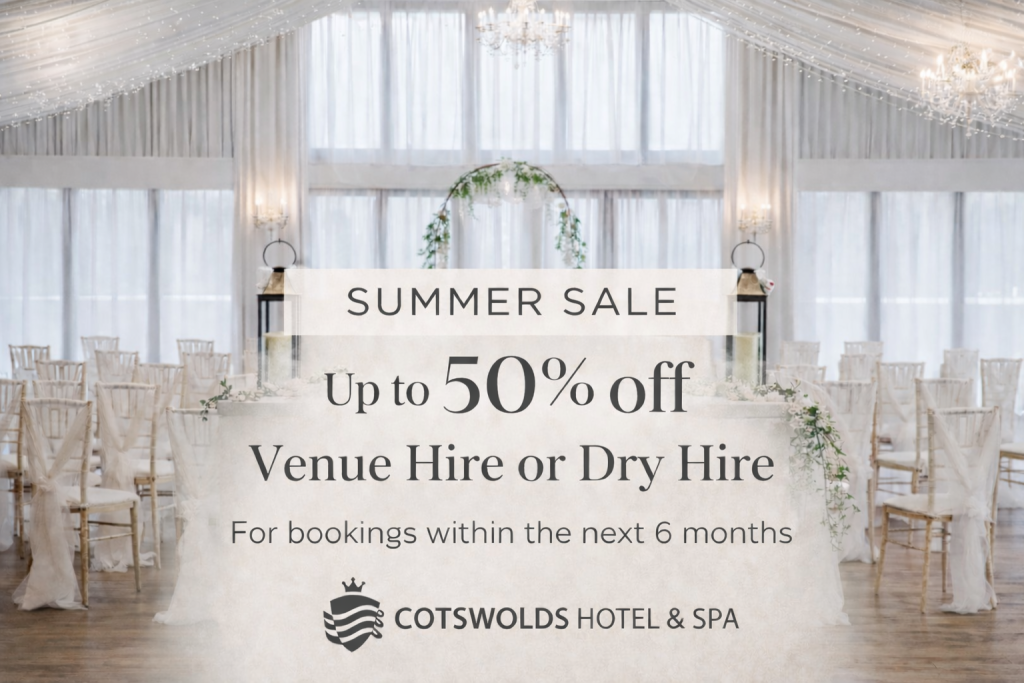 Contemporary hotel wedding venue in the heart of the Cotswolds, just 25 minutes from Oxford. Enjoy countryside views, 114 on-site bedrooms, a stunning ballroom for up to 450 guests, and flexible wedding packages tailored to your day.